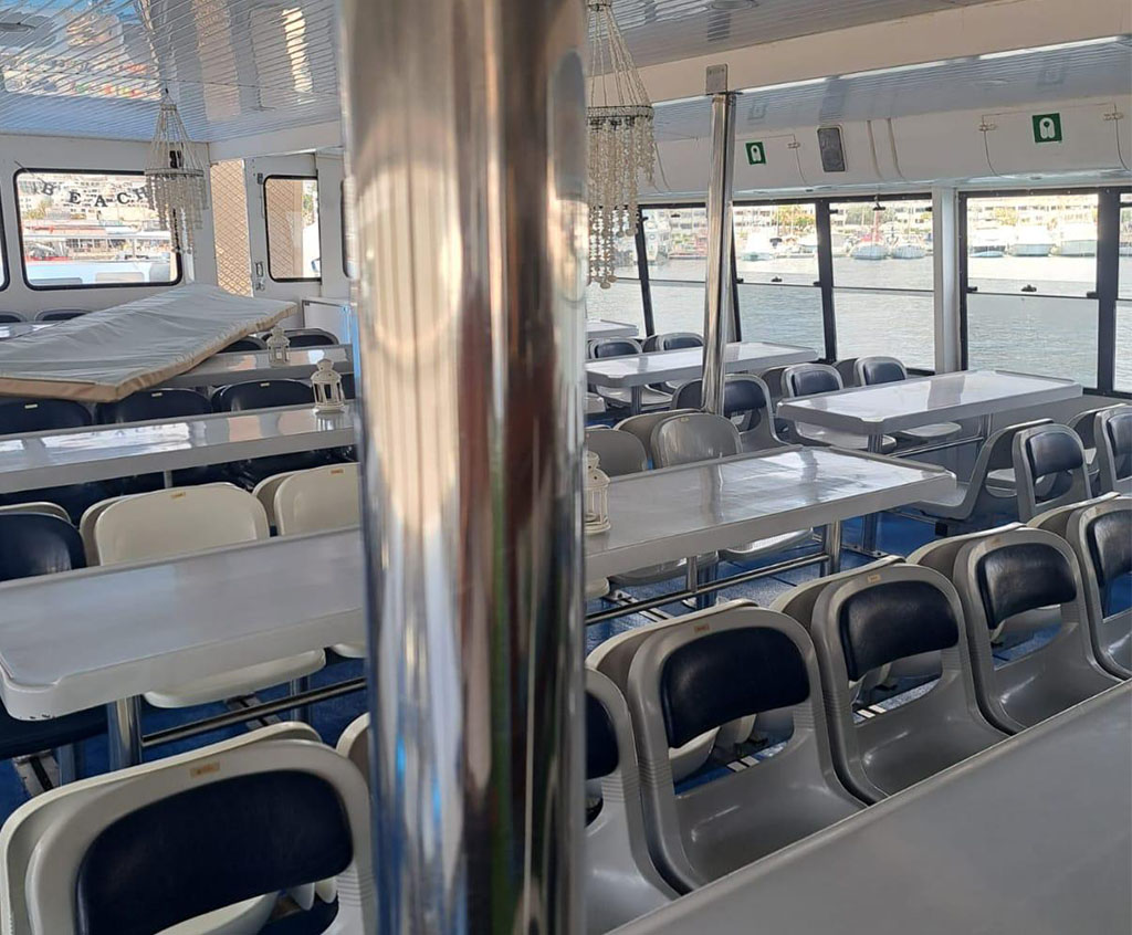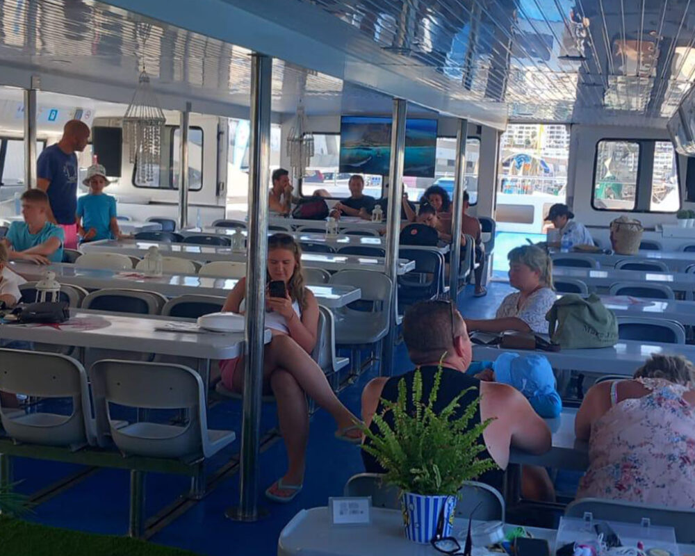 This catamaran has a maximum capacity of 240 passengers, making it one of the largest in our fleet.