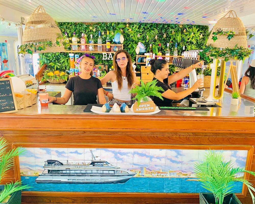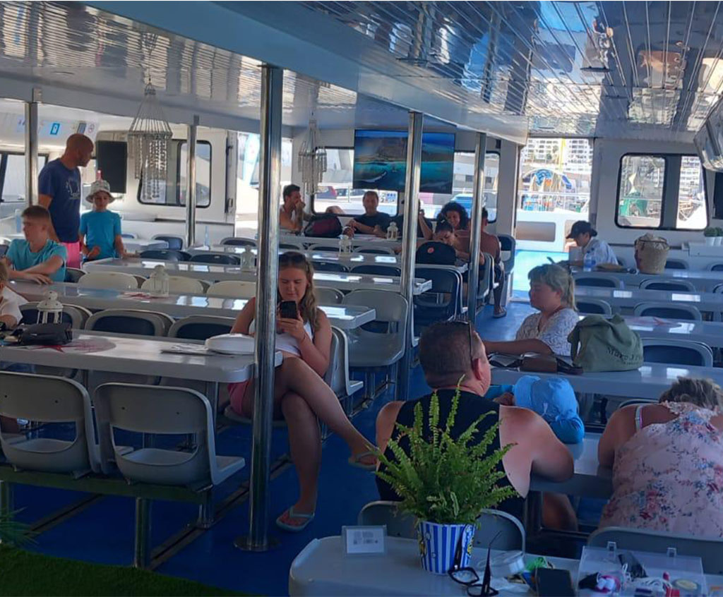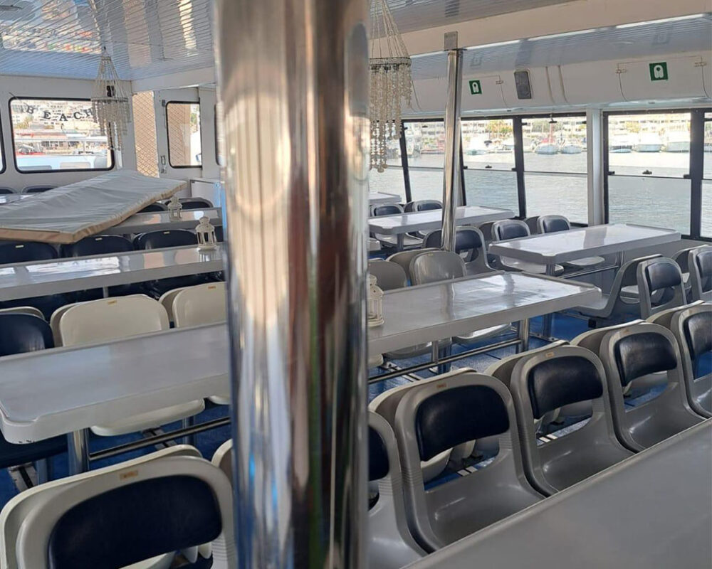 Este catamarán tiene una capacidad máxima de 240 pasajeros, siendo uno de los más amplios de nuestra flota.