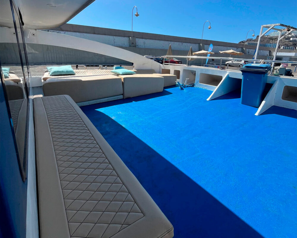 Como todos nuestros catamaranes, destaca por su gran estabilidad en la navegación y su espaciosa cubierta, ideal para disfrutar del recorrido con total comodidad.