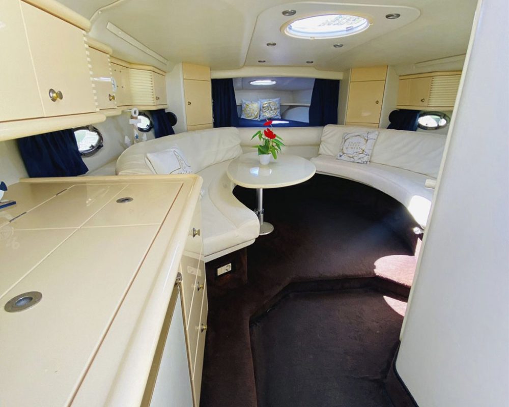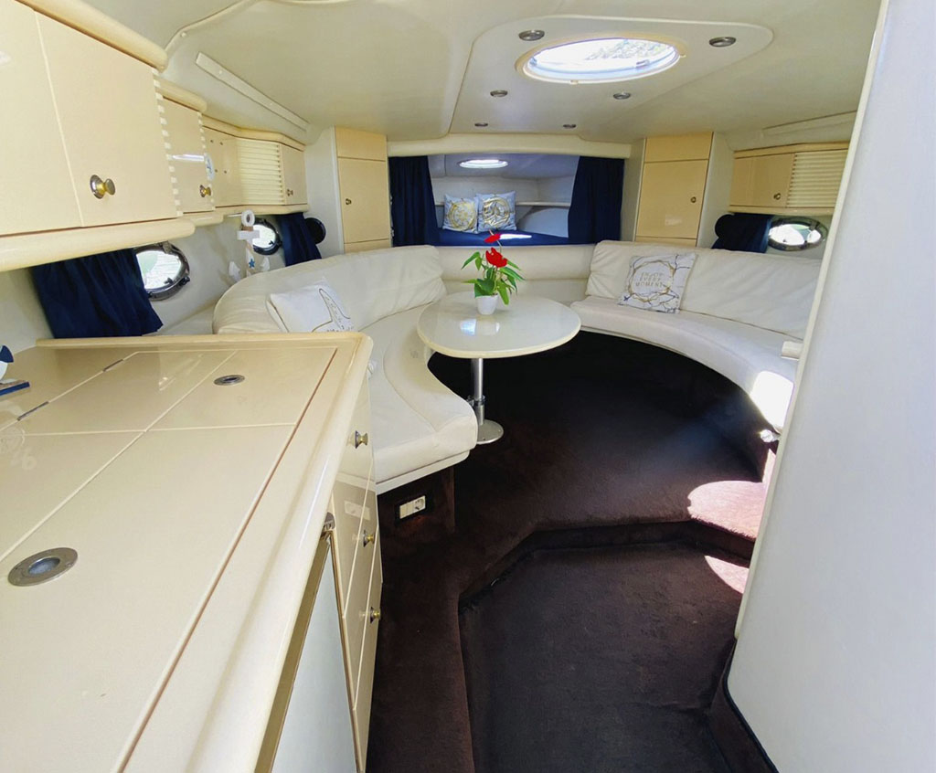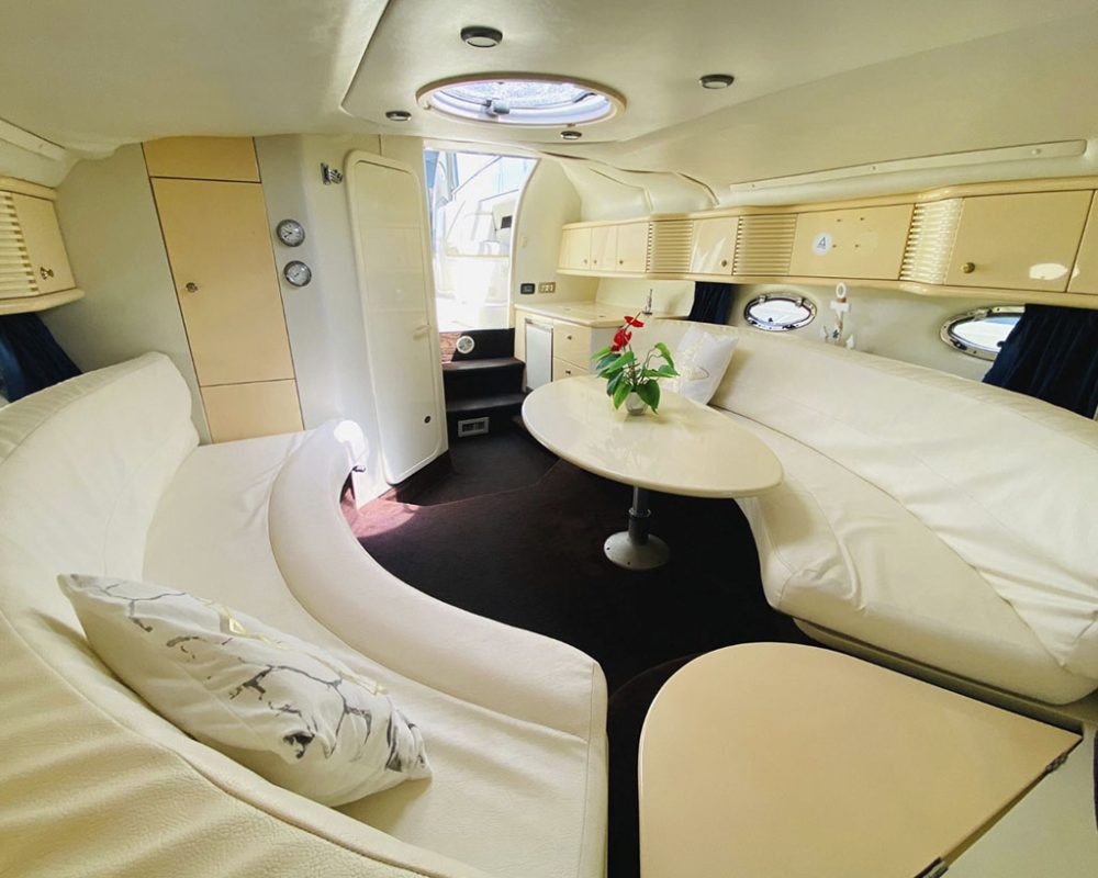 El Sunseeker Tomahawk 41, con sus 13 metros de eslora y una potencia total de 600 CV, ofrece una navegación ágil y potente, alcanzando una velocidad de crucero de 25 nudos y una máxima de 42 nudos.
